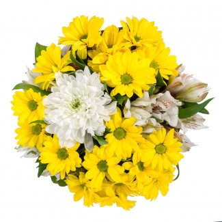 Букет Смайлик – жизнерадостный, милый, приятный, поднимающий настроение. В составе композиции 1 хризантема белого цвета, 2 кустовые хризантемы, 3 альстромерий и сочный салал. Букет яркий, поэтому флористы подобрали для него спокойную крафтовую упаковку. Заказать цветы можно в любое время суток. Доставка по Кургану от двух часов, более точное время подскажет менеджер.
